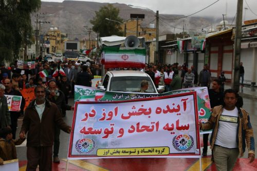 همزمان با سراسرکشور جمعی از مردم و مسئولین اوز در هوایی بارانی با شرکت در راهپیمایی چهلمین سالگرد پیروزی انقلاب اسلامی، مسیر میدان امام شافعی تا سالن ورزشی میراحمدی را طی کردند.