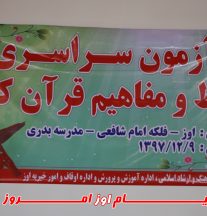 آزمون سراسری حفظ و مفاهیم قرآن کریم ۹ اسفند با همکاری اداره فرهنگ و ارشاد اسلامی، اداره آموزش و پرورش و اداره اوقاف و امور خیریّه اوز برگزار شد.