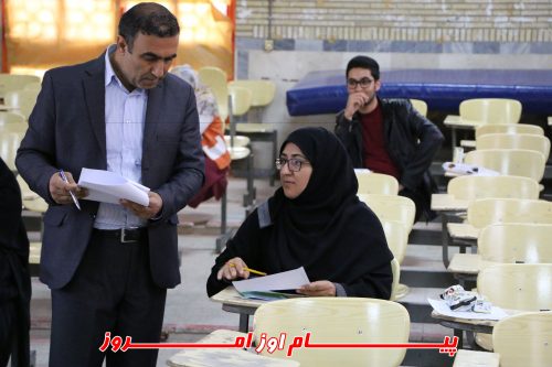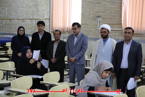 آتش فراز بخشدار اوز،حجت الاسلام عدالتی، رضایی و قاسمی و شاه حسنی از آموزش و پرورش، فروغ هاشمی،ریحانه حسینی و علی قربان قاعدی از اداره فرهنگ و ارشاد اسلامی و شعیب فخری از اداره اوقاف و امور خیریّه اوز هنگام برگزاری آزمون در سالن حضور داشتند.