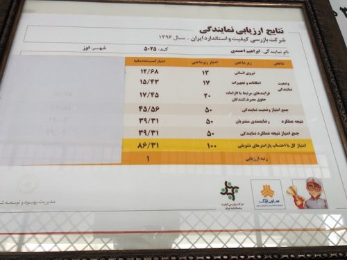 در ارزیابی سالیانه شرکت بازرسی کیفیت و استاندارد ایران، نمایندگی های شرکت های خودروساز براساس معیارهای: نیروی انسانی، امکانات، فرآیندهای خدمات پس از فروش و رضایت مندی مشتریان مورد ارزیابی قرار می گیرند. هریک از این عناوین خود به زیر گروه های کوچکتر تقسیم بندی می شوند.