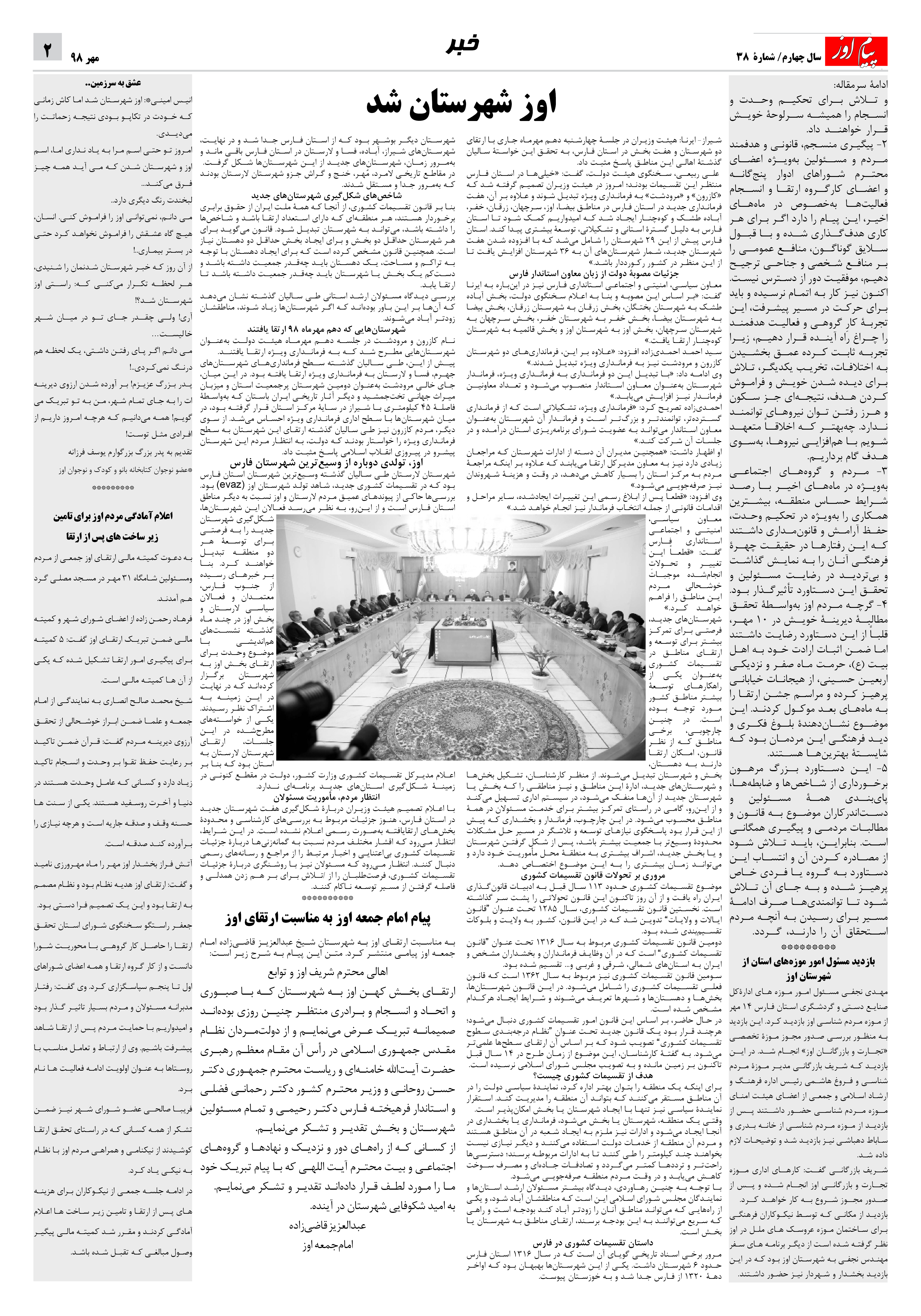 سایر اخبار شهرستان اوز و اخبار سراسری کوتاه در صفحات داخلی به چاپ رسیده است.