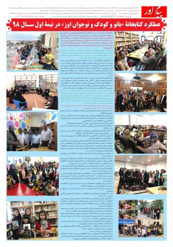 صفحه آخر نیز شامل عملکرد کتابخانه بانو و کودک و نوجوان در نیمه اول سال ۹۸ است.