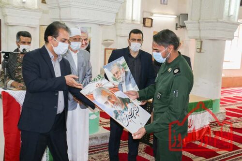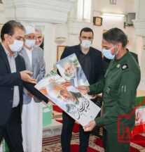 در ادامه تمثال شهدا سردار سلیمانی و فخری زاده از طرف فرمانداری و اتباع به فرمانده ناحیه مقاومت اهدا شد.