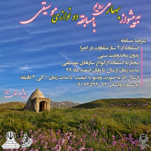 انجمن موسیقی شهرستان اوز با همكاري اداره فرهنگ و ارشاد اسلامي با برگزاری مسابقه دونوازی موسیقی به پیشواز بهار می رود.