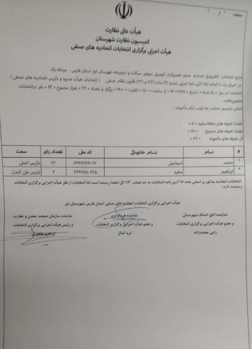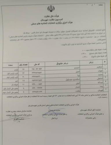 تبریک می گوییم به آقای احمدی و دیگر همراهان این صنف . امیدوار هستیم افراد لایق برای صنف های دیگر انتخاب شوند نه افراد دلال و خودخواه