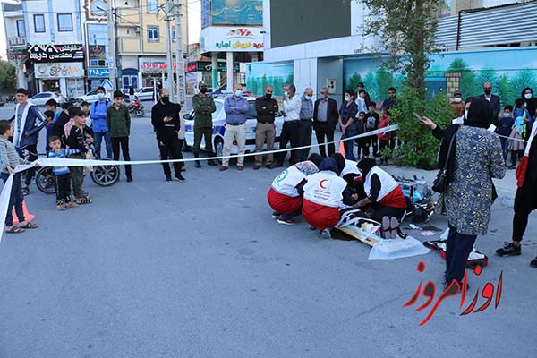 این مانور شبیه ساز یک تصادف ماشین سواری و یک موتورسیکلت بود.