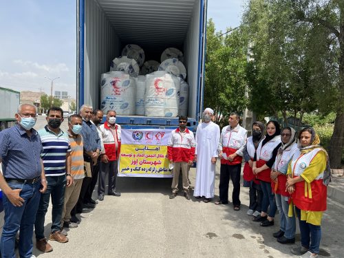 در مراسمی که با حضور شیخ محمد صالح انصاری مدیر مجتمع علوم دینی، رشیدی مدیر هلال احمر، عبدالرحمن صالح مدیر انجمن اتحاد و توسعه و جمعی از اعضای خانه هلال برگزارگردید، عبدالرحمن صابری گفت: این بشکه ها به ارزش بالغ بر یکصد میلیون تومان توسط اعضای گروه اتحاد و توسعه خریداری و با کانتینر بزرگ از شرکت طبرستان ارسال شده و در بندر خمیر تحویل می گردد.