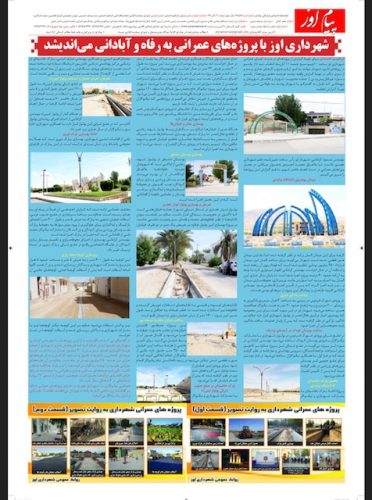 صفحه آخر سی امین شماره پیام اوز به گزارش پروژه های عمرانی شهرداری اوز اختصاص یافته است.
